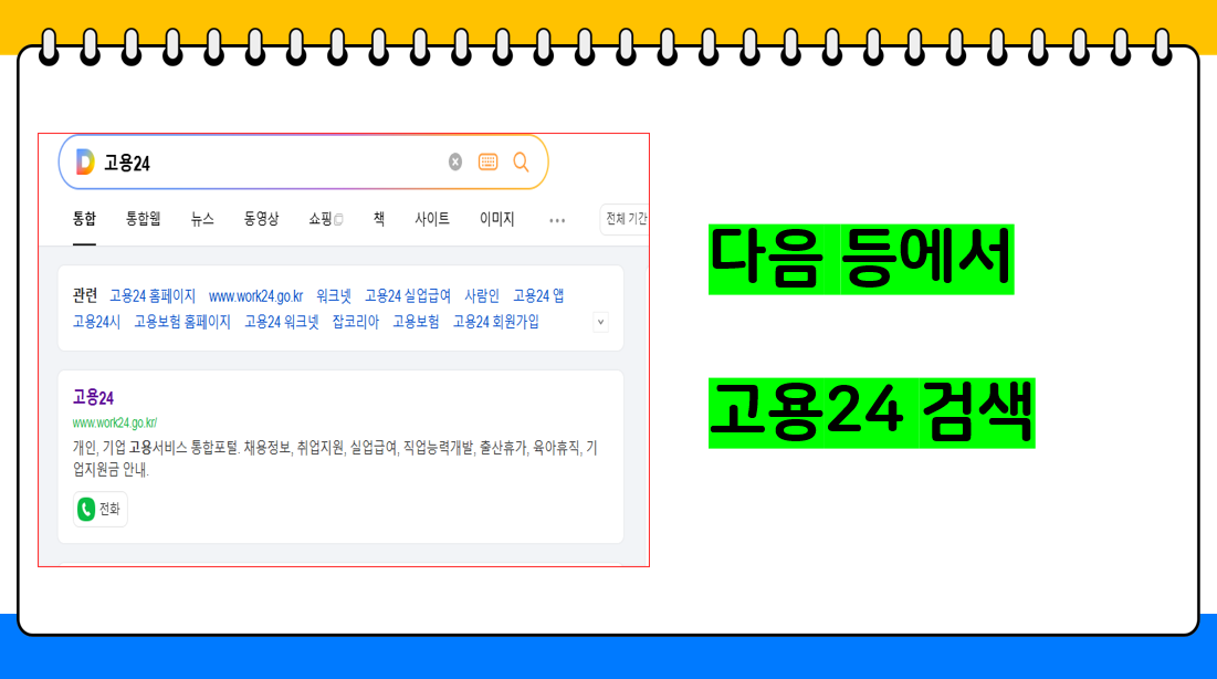 1. 다음 등 검색 포털에서 "고용24"를 입력하면 홈페이지 하나가 나오는데요.