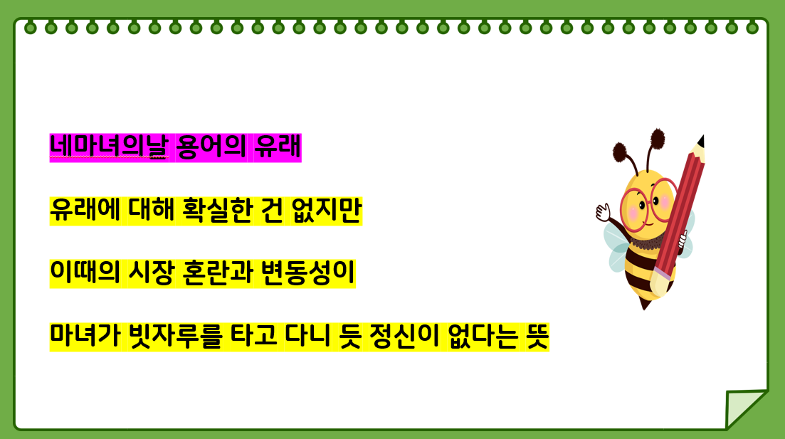 그 외에도 선물 및 네 마녀의날 등 연관성이 있는 이야기를 함께 나눠보면 어떨까 합니다.