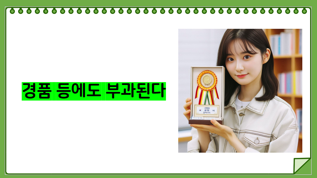 지금까지 뜻과 경품 수령 시 주의점 및 계산법에 대해서 함께 공부하는 시간을 가졌습니다.