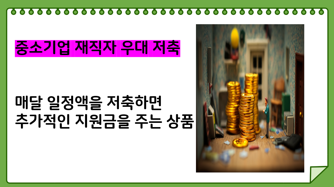 이름부터 뭔가 좋아 보이죠? 중소기업에서 재직 중인 분이 매월 50만 원(최대)을 입금 시 납입액의 20퍼센트를 추가로 지원해 주는 상품으로 만기가 되면 납입한 + 지원된 금액을 한 번에 다 받을 수가 있답니다.