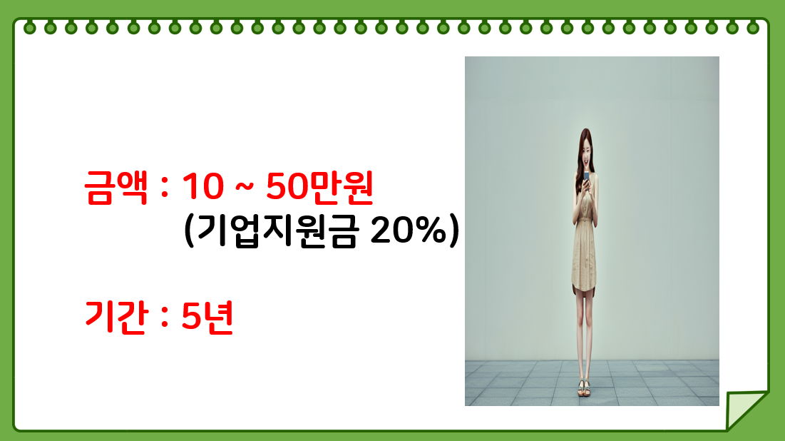가입 금액은 최소 10만 원 - 최대 50만 원이고 여기서 대박인 것은 기업 지원금이 20% 적용된다는 것입니다.