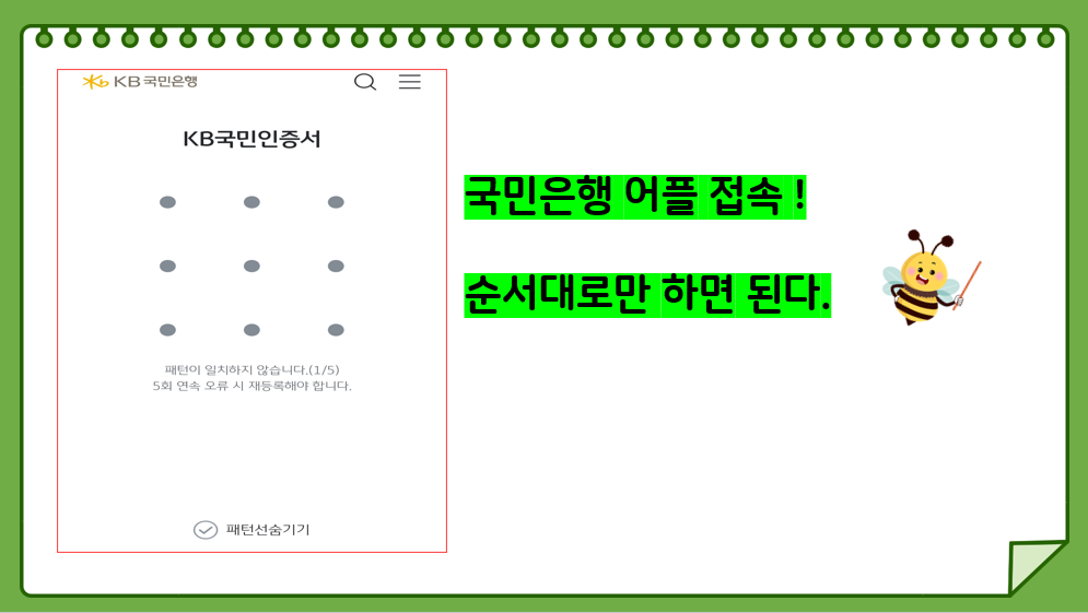 ① KB 스타뱅킹 앱 실행 → 나의 계좌로 로그인 (패턴이나 지문, 인증서 등으로 접속)
