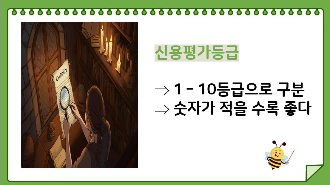 일반적으로 1~10등급으로 나누어지는 경우가 대다수입니다. 다만, 각각의 신용평가사마다 등급을 매길 때 기준은 상이합니다.